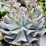 Echeveria Misty Lilac is a hybrid with silver-lavender leaves that curl upright. This plant will delight with numerous flower blooms. This plant is available in a 1 gallon pot with a 6 inch span. It will be shipped bare root and without a pot.