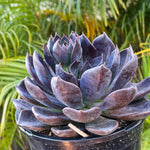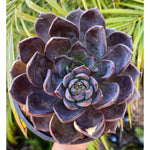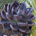 Echeveria Dark Moon is a uniquely burgundy black colored rosette. This is a new hybrid developed at a local nursery and from my experience goes fully dormant during winters requiring little water. Now that summer has arrive these beauties are big and plump and ready to be appreciated.