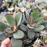 Kalanchoe Bow Tie succulent has velvety leaves covered with soft tiny hairs that act as a natural shield from hot sunlight.