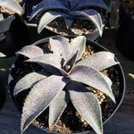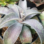 Mangave Mangrieda Barney is a newer hybrid with beautiful purple spots and silver lavender body. This plant is currently shown in a 10 inch pot.