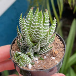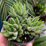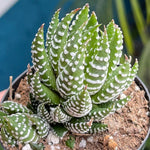 Haworthia Coarctata is a slow-growing clumping succulent with green leaves and white ribbing.
