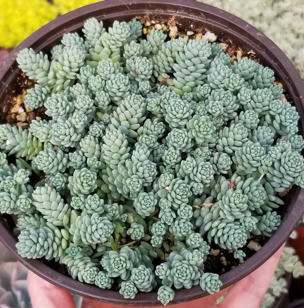 Sedum Dasyphyllum Major, also known as Corsican Stonecrop or Blue Tears Sedum, is a quick-to-grow evergreen succulent. This little ground cover sedum features adorable blue-green foliage with long branching stems and tiny round leaves. Sedum Dasyphyllum Major can withstand light foot traffic, making it an excellent low-water lawn substitute. You can trim it back to create a dense mat and leave the trimmings to root & grow into new plants.